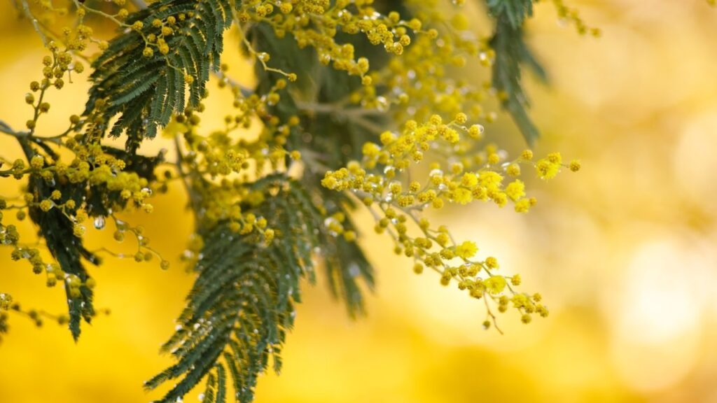 L’idea geniale fu quella di ricoprire una soffice torta farcita di crema diplomatica con tanti piccoli cubetti di pan di Spagna, in modo da ricordare proprio i fiori piumosi della mimosa. Il giallo dello zafferano o del liquore all’albicocca nell’impasto e il contrasto con la crema bianca all’interno ne fanno un dolce scenografico e delicato.