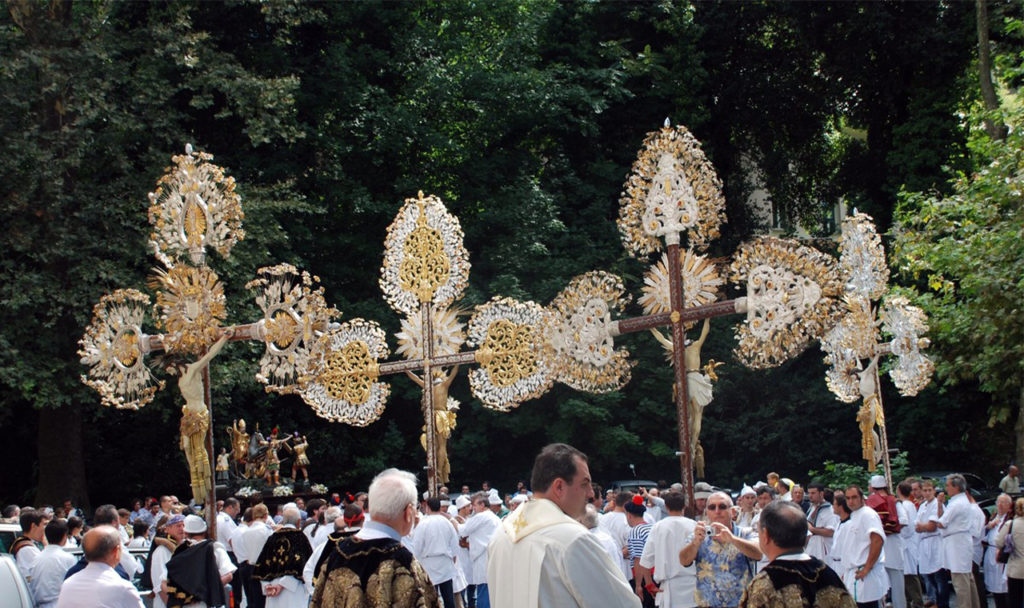 L’immagine più iconica della Pasqua ligure è senza dubbio quella dei Cristi: enormi crocefissi lignei, pesantissimi e riccamente decorati con fiori d’argento e velluti, portati a spalla dai membri delle antiche Confraternite (i Casacce).